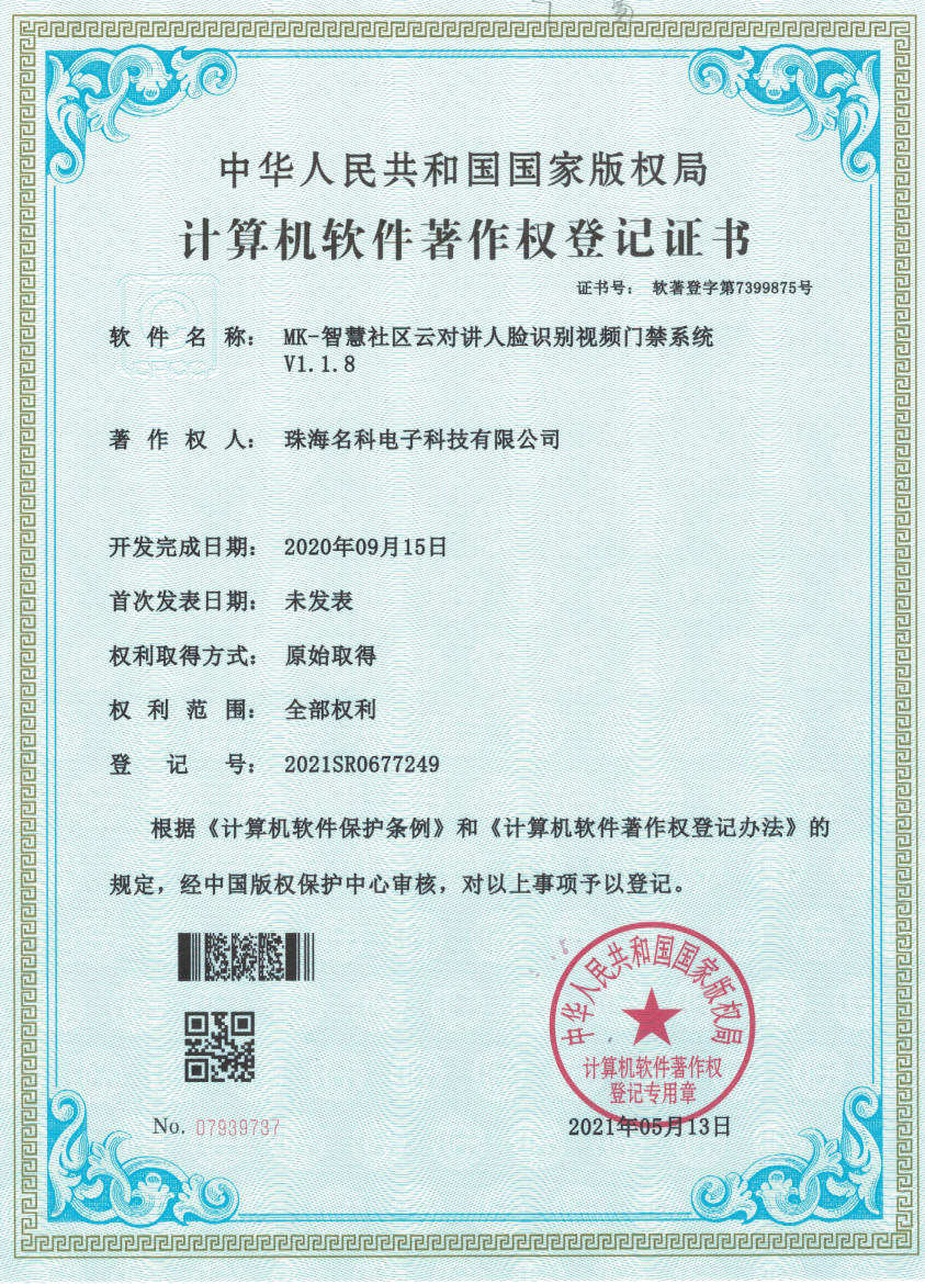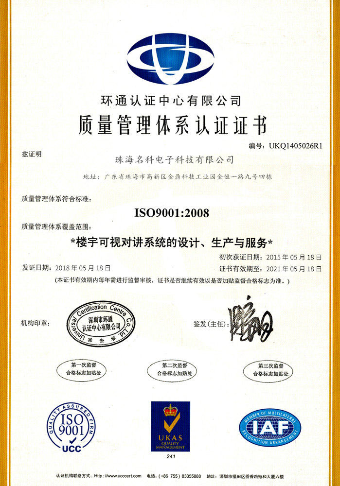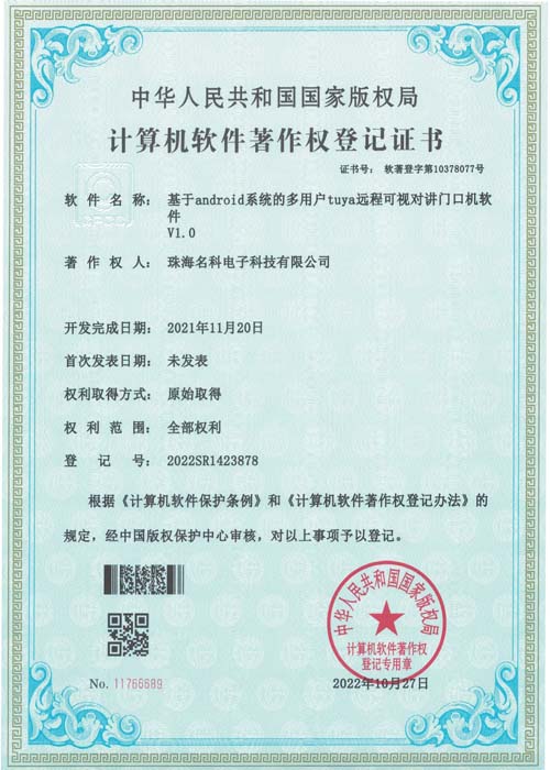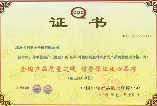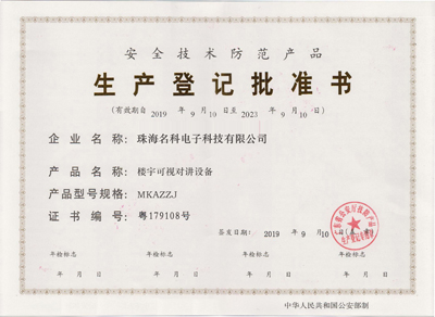 樓宇對講-生產(chǎn)登記批準(zhǔn)書