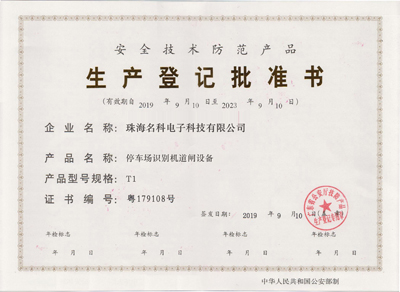 車牌識別-生產(chǎn)登記批準(zhǔn)書